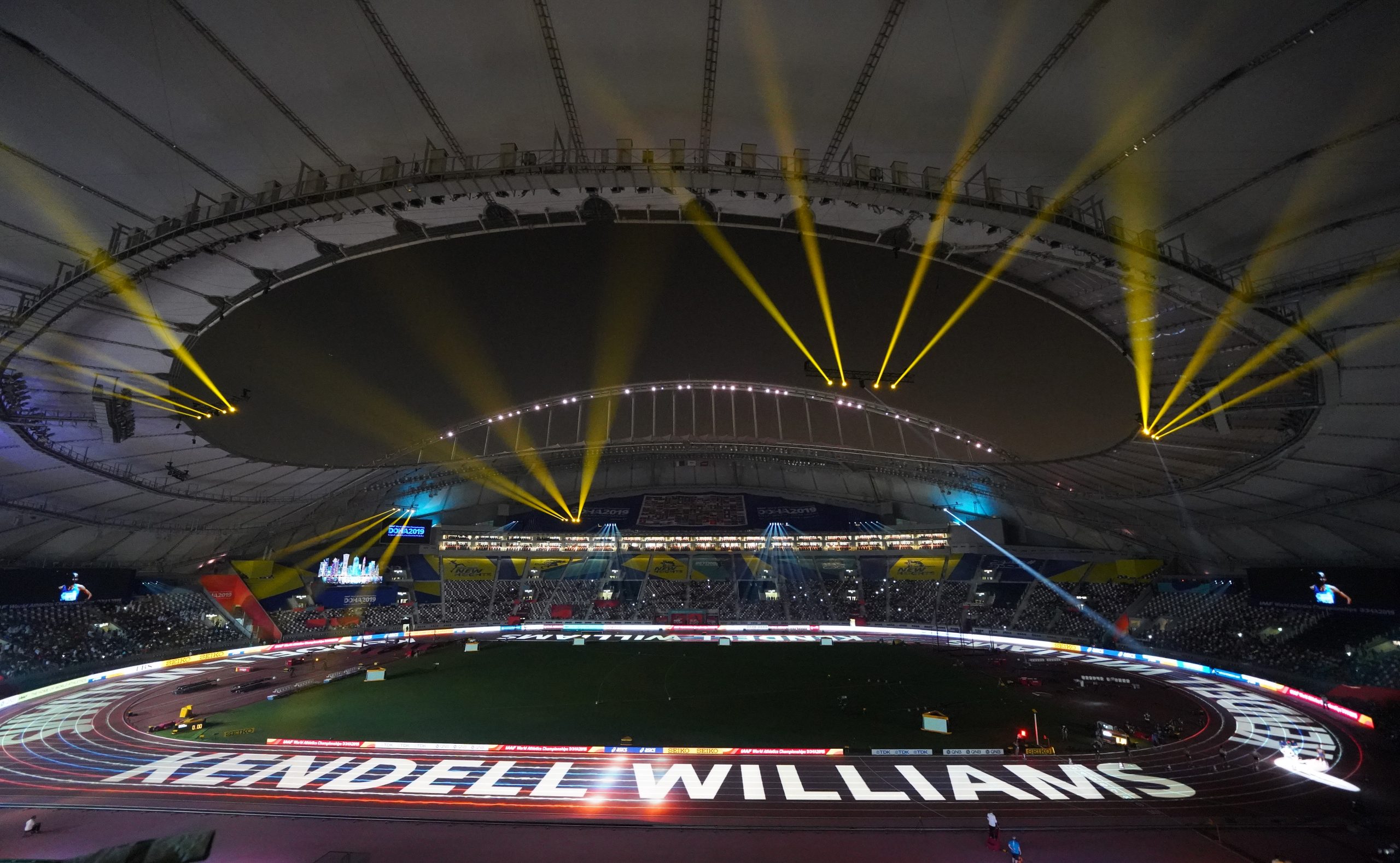 Arguably the most impressive and talked about audio visual innovation at the Qatar Championships this year was the track projection. CT used over 100 20K and 30k Lumen laser diode projectors to project custom content across the entire running track – bringing it to life during the finals.