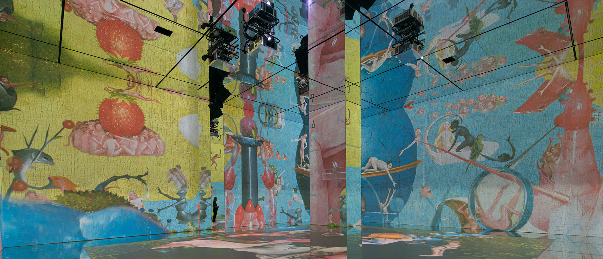 A complex project of this caliber does not come without its challenges and the first one in this instance was the venue itself. Being such a spacious building with multiple rooms and galleries meant that technically this required a unique delivery. In addition to this, technology positioning was key in meeting the client’s vision of projecting well-known artistic masterpieces seamlessly across the various surfaces and angles while ensuring the moving artwork illusions were never disrupted by the technology used to display it.