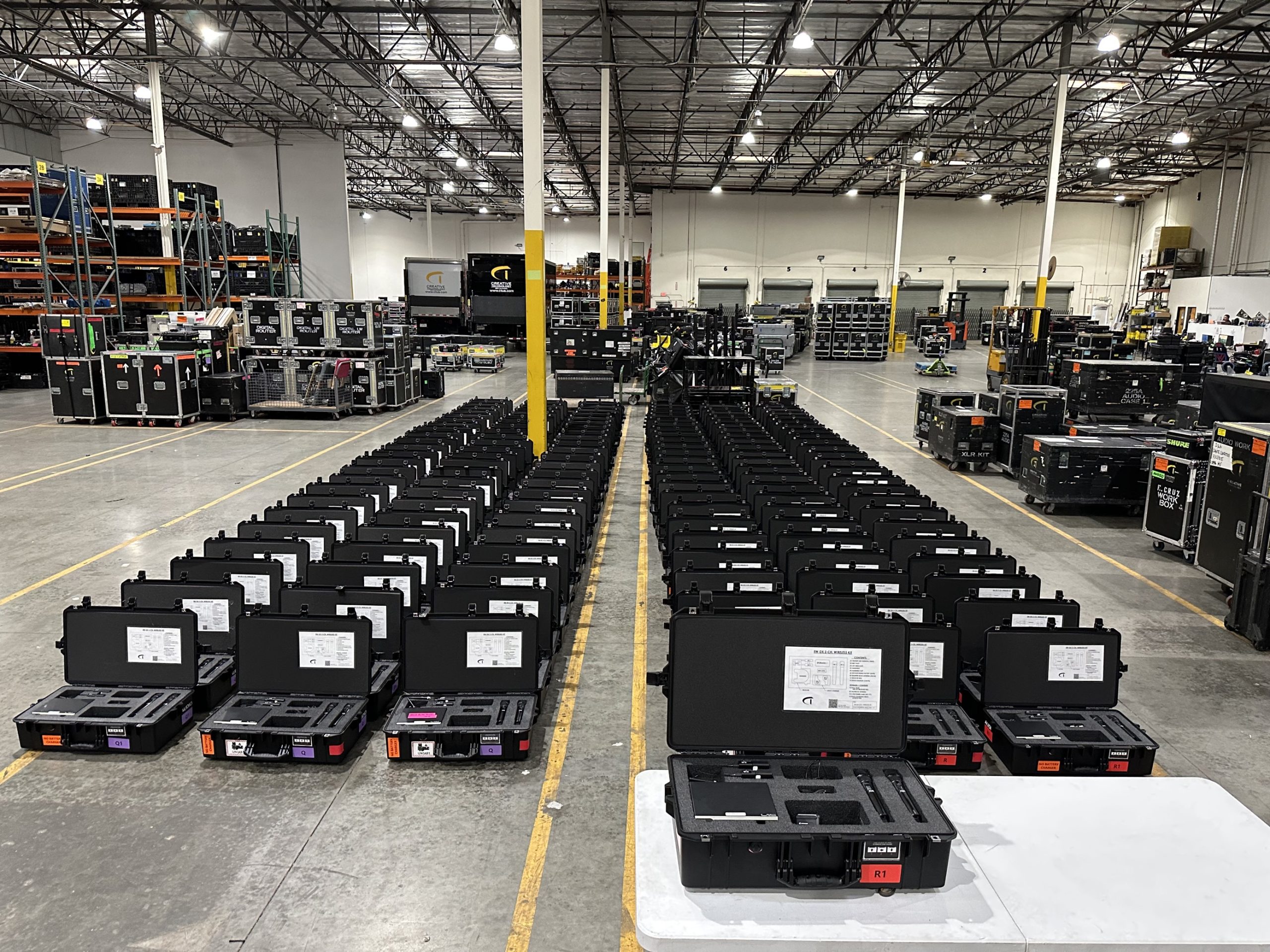 “Our goal was to put together kits with everything in one box that our clients might need,” says Barrett. “It was a clean solution for us to package everything in one place so it’s all there and ready to go. We can’t afford to have people looking for disparate components and having to ship them out at 10:00 p.m. on a weeknight. These are very easy to ship and also easy to transport on-location in and around the staging area.”